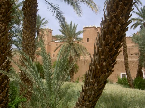 Da kommt M'Barek, der Chef und älteste der vier Brüder, die den Platz bewirtschaften. Er erzählt, dass zu dem Gelände die Kasbah Asslim gehört, die man auch besichtigen kann und nimmt mich gleich mit. Das sechstemal bin ich nun in Marokko, aber so etwas schönes habe ich noch nicht gesehen! Eine riesige verschachtelte Kasbah, mit Mauern, Türmen, Treppen und Terrassen. Vor der Eingangstür eine jahrhundertealte Holztafel mit einem Koranspruch, der das Haus beschützen soll. Ein Teil der Kasbah ist der Familie vorbehalten, heute besteht sie nur noch aus sechs Personen. Früher gab es mehr als 70 Familienangehörige, Bedienstete und Sklaven.